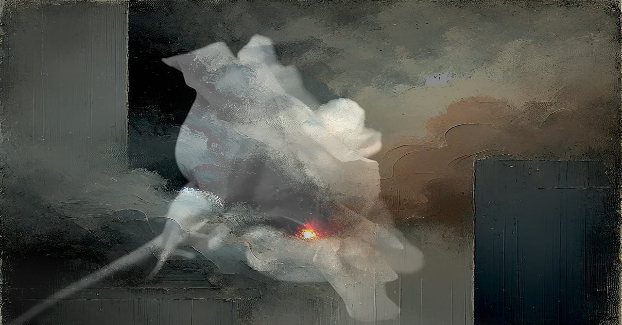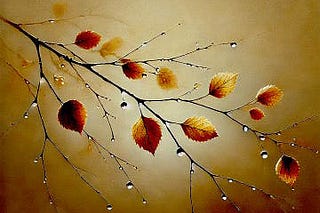 A widow packs her husband’s items—then leaves to find her life again. The image is an autumnal branch with dew drops, and leaves of gold and red.