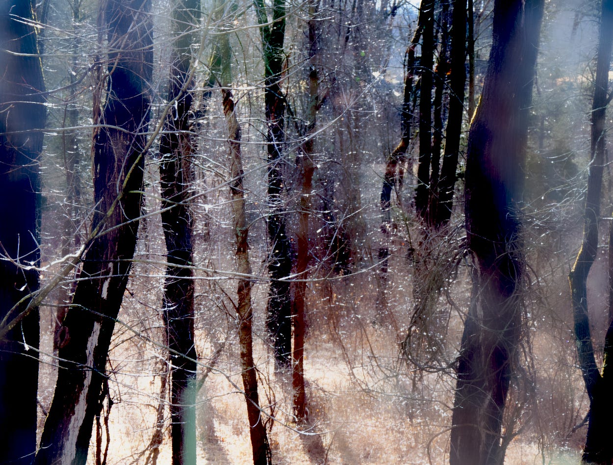 Each branch lightly dusted with last night’s snowfall. Clouds play between shades of gray, a faint brush of cream on the horizon. The play of light at first morning marked the day with quiet delight.